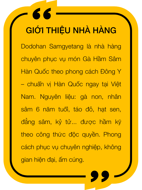 “Tôi từng ăn Samgyetang ở Hàn, nhưng ở đây không thua kém! Đậm vị, đầy đủ thảo mộc, rất bổ dưỡng.”